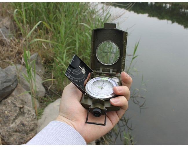 Offering a little different style to the traditional Military style compass, there is no flip up optic to peer through (like in a traditional lensatic compass). This model uses a true sighting optic that allows you a direct read of the internal compass card housed in the fluid filled capsule. And the vertical lubber line of the sighting optic lets you take full advantage of the 1 degree resolution used on the compass card. The clinometer allows the measuring of differences in height and slopes.