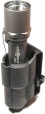 The patented V70 Speed Flashlight Holster allows the user to quickly access the flashlight from either a bezel-up or bezel-down position*. Rigid polymer construction protects your light from impact while ensuring an "open mouth" for fumble-free re-holstering. An adjustable spacer allows the molded-in belt slot to be fitted to belts up to 2.25" wide.